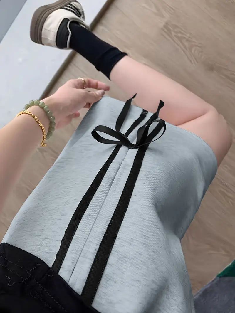100% Polyester Women's Casual Striped Shorts with Side Bows & Contrast Trim - Elastic Waistband, Side Pockets, Machine Washable, All-Season Comfort | Striped Casual Shorts