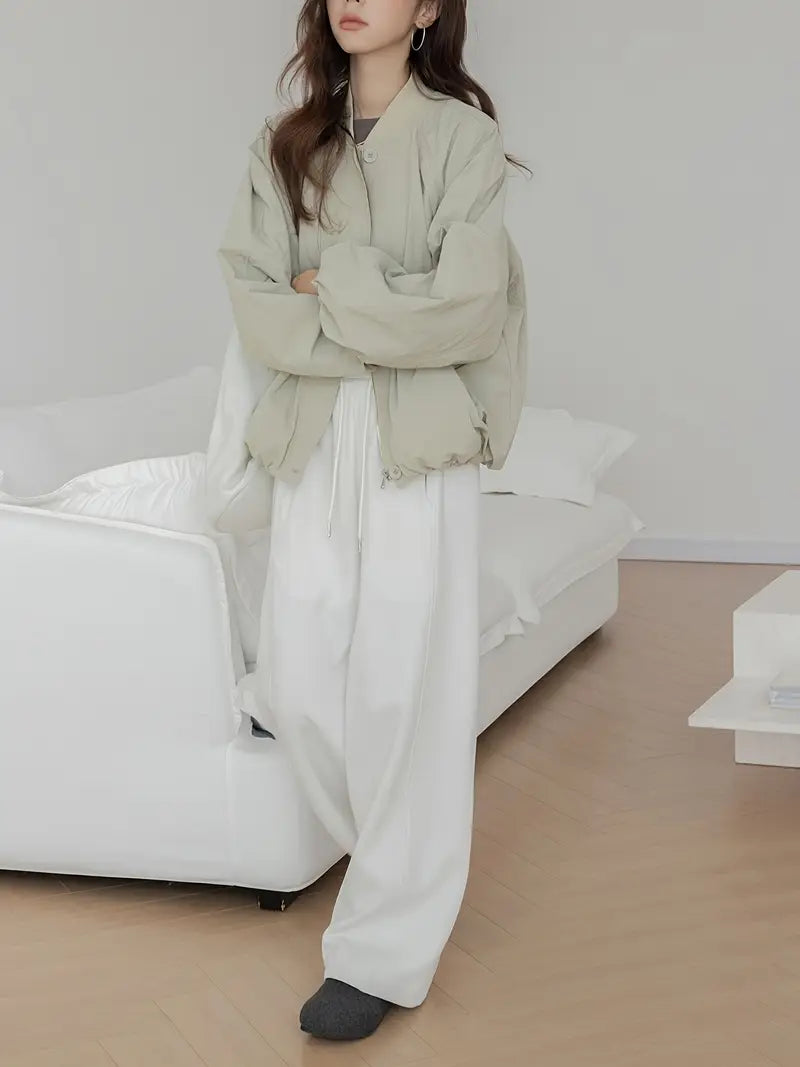 Floral Lantern Sleeve Loose Fit Baseball Jacket Casual Sport Short Coat