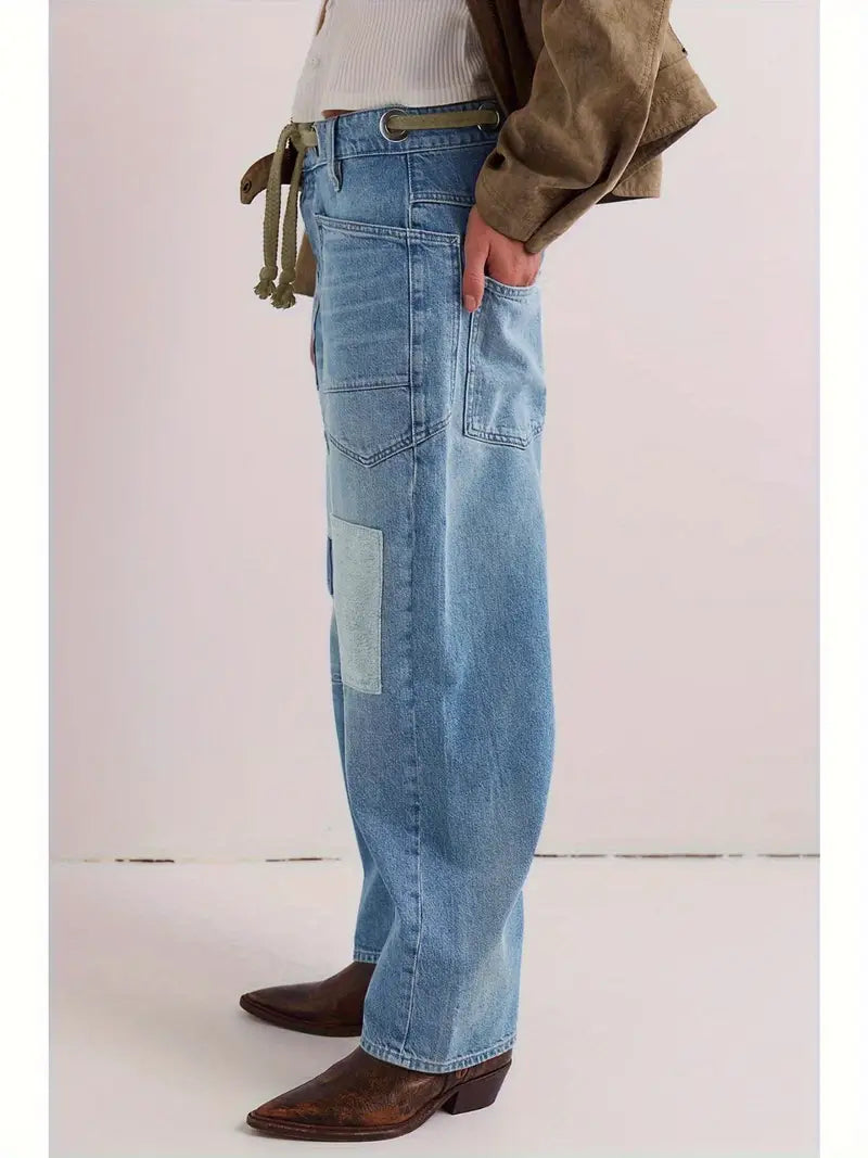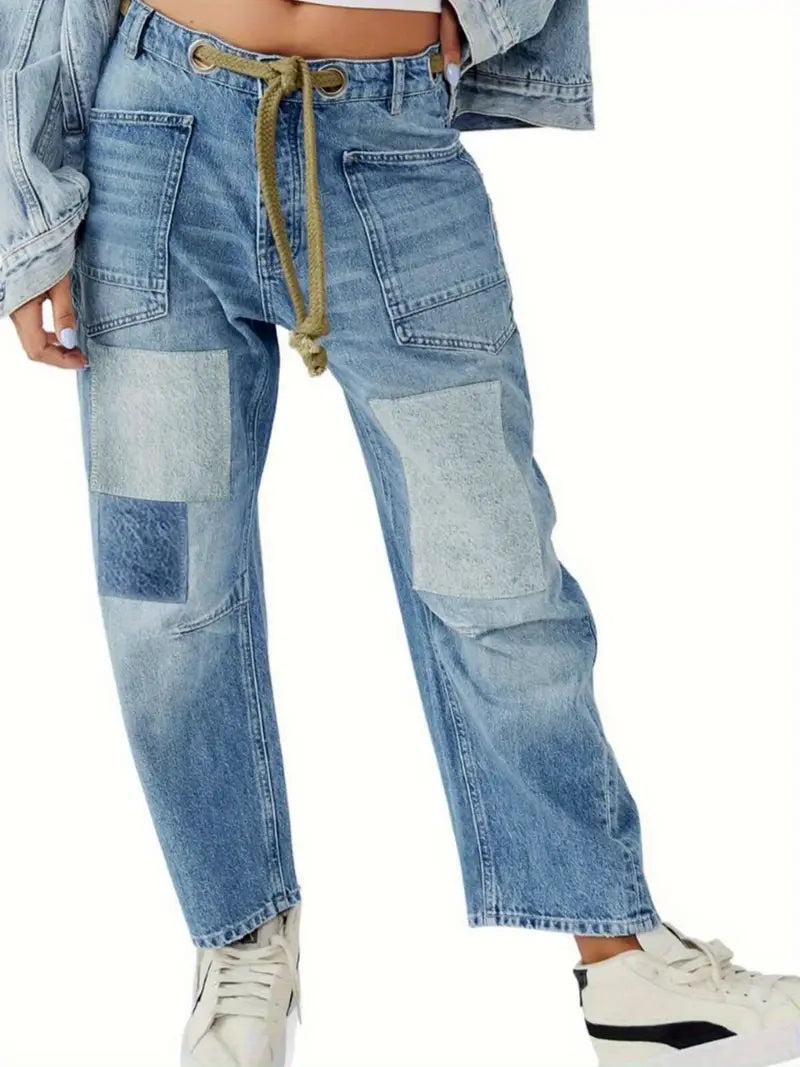 Women'S Boyfriend Jeans-like Pants - Loose Fit Spaghetti Strap Trousers with Drawstring Waist, All-Season Casual Pants for Everyday & Formal Outfits, Non-Stretchy Structured Legs