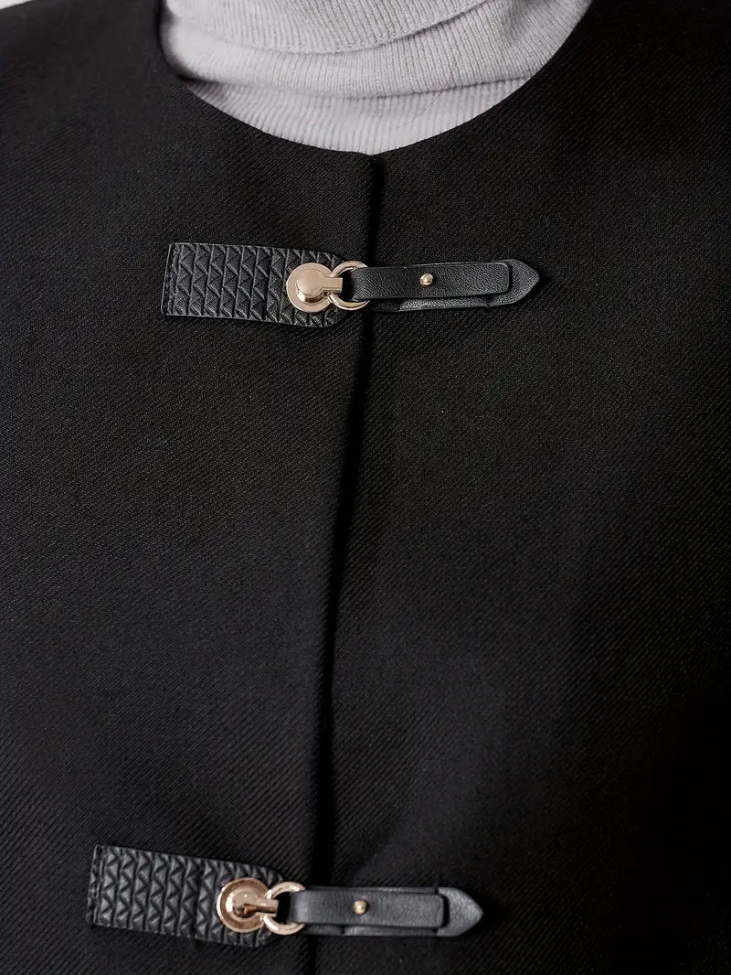Women's Cashmere-Infused Elegant Black Coat - Tailored Winter Jacket with Structured Shoulders, Dry Clean Only, Solid Color Design for Fall & Winter, Casual Chic Outerwear