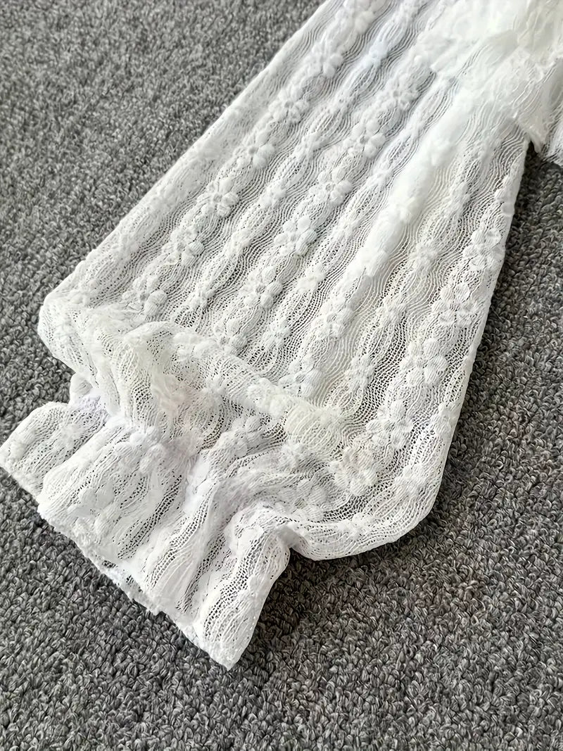 Women'S Lightweight V-Neck Cardigan - Long Sleeve, Button-Up Front, Ruffled Hem, Casual Fall/Winter Layering Piece, Solid White, Machine Washable, Casual Wear Cardigan | Vneck Design | Texture